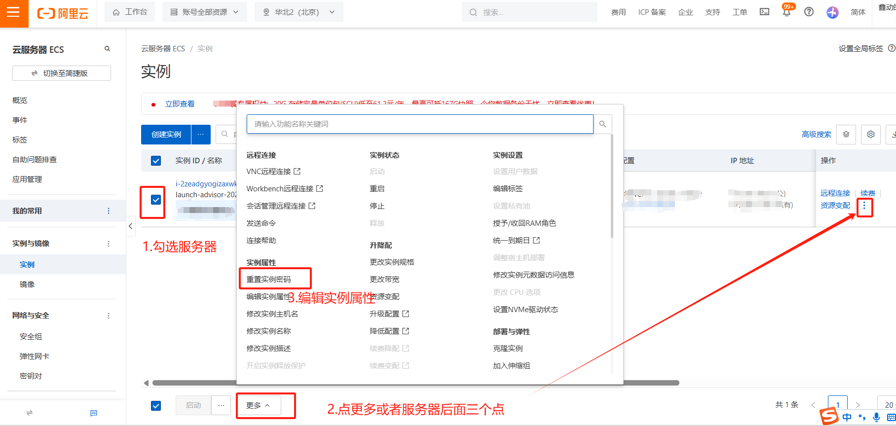 点击“更多”–“实例设置”–“编辑实例属性”