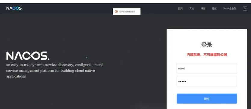 Nacos设计为在内部网络中使用,而非面向公网,因此在实际部署时请确保网络策略的安全性。